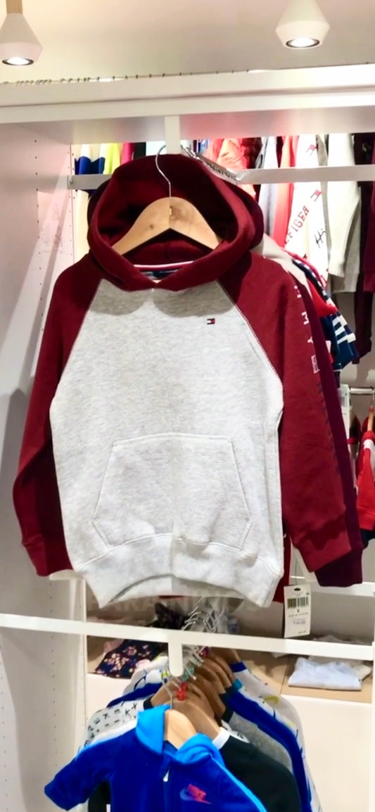 Polerón Tommy Hilfiger Niño con Capuch Gris y Burdeo